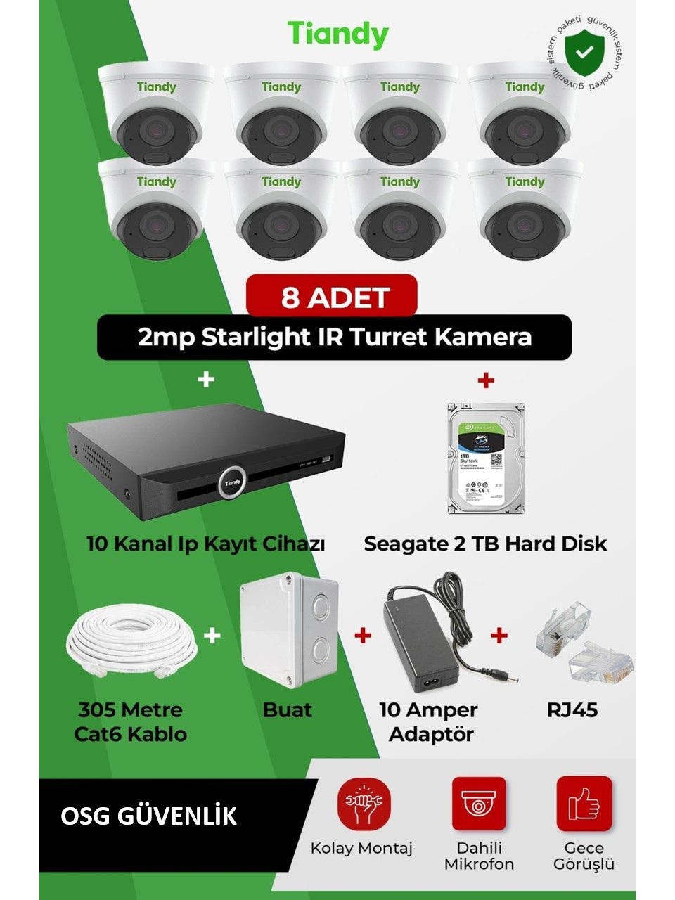 TİANDY 8 KAMERALI GÜVENLİK SETİ