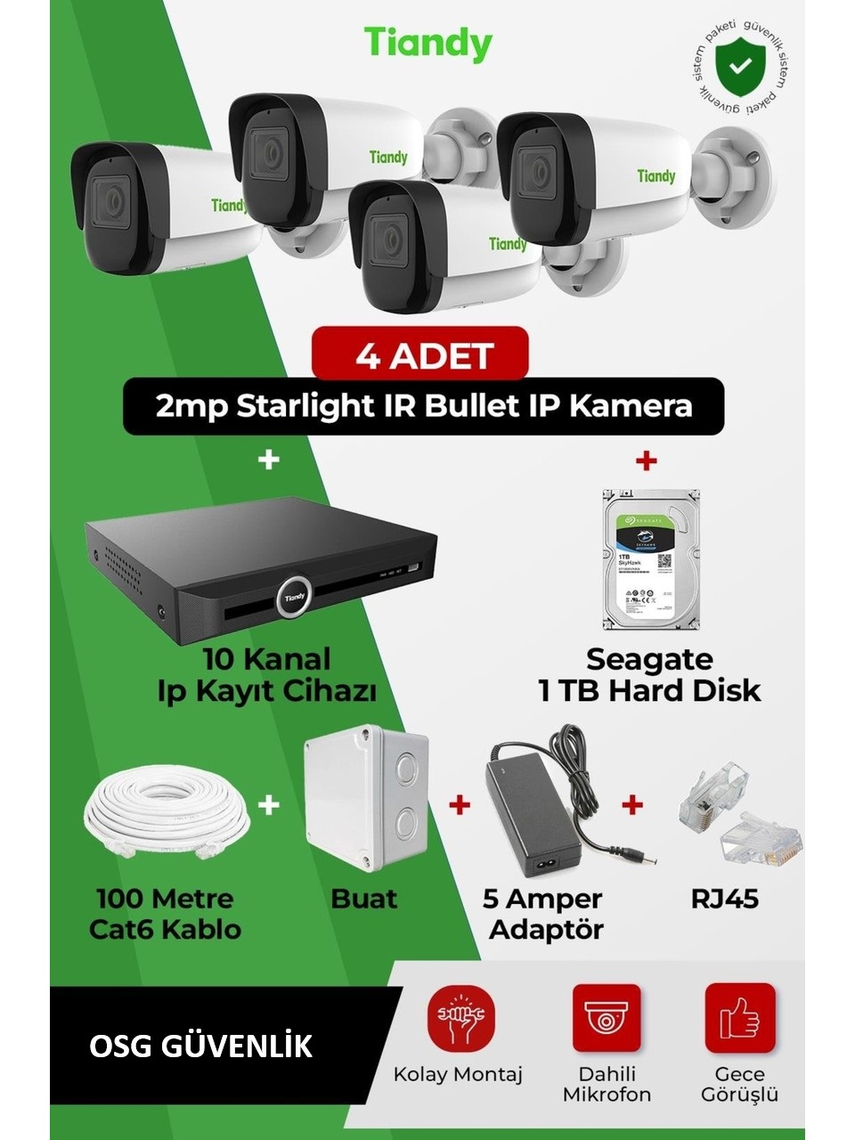 TİANDY 4 KAMERALI GÜVENLİK SETİ